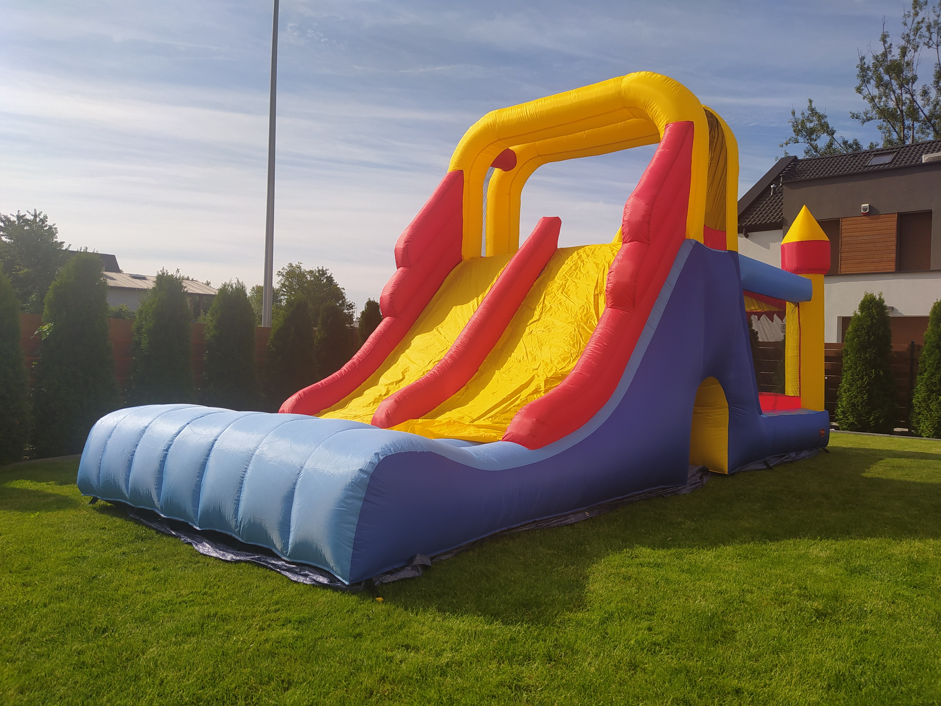 Oferowana zjeżdżalnia jest najwyższej jakości urządzeniem, wykonanym z odpornych na uszkodzenia materiałów, zapewniającym w pełni bezpieczną zabawę.