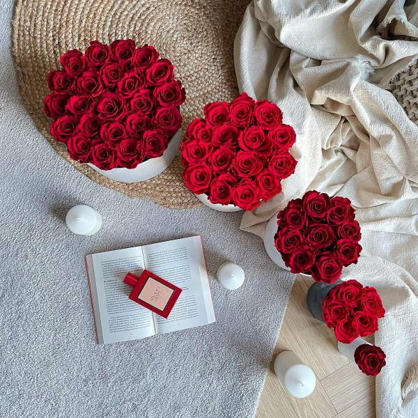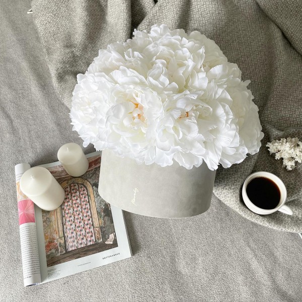Oferujemy luksusowe pięknie ułożone kwiaty w pudełku, z pachnących, jedwabnych róż lub piwonii (trwałość min. 10 lat). Dodatkowo, oferta została wzbogacona o róże wieczne (róże cięte, poddane procesowi stabilizacji, dzięki czemu utrzymują swoją świeżość min. 2 lata). Bez wątpienia, to obecny hit Instagram’a i przedmiot pożądania stylistów z całego świata. Flower Boxy są idealnym pomysłem jako dodatek do prezentu. Zastąpienie tradycyjnych kwiatów - jedwabnymi bądź wiecznymi wzbudzi zachwyt wśród Pary Młodej ale i gości weselnych. To także genialny pomysł na prezent dla gości! Zalety kwiatów w pudełku: Kwiaty wieczne - trwałość min. 2 lata | Kwiaty jedwabne - trwałość min. 10 lat | Niezapomniany prezent zdobiący wnętrze domu i przypominający o wielkim dniu | Designerski wygląd | Bezobsługowe | Nie wymagają podlewania.