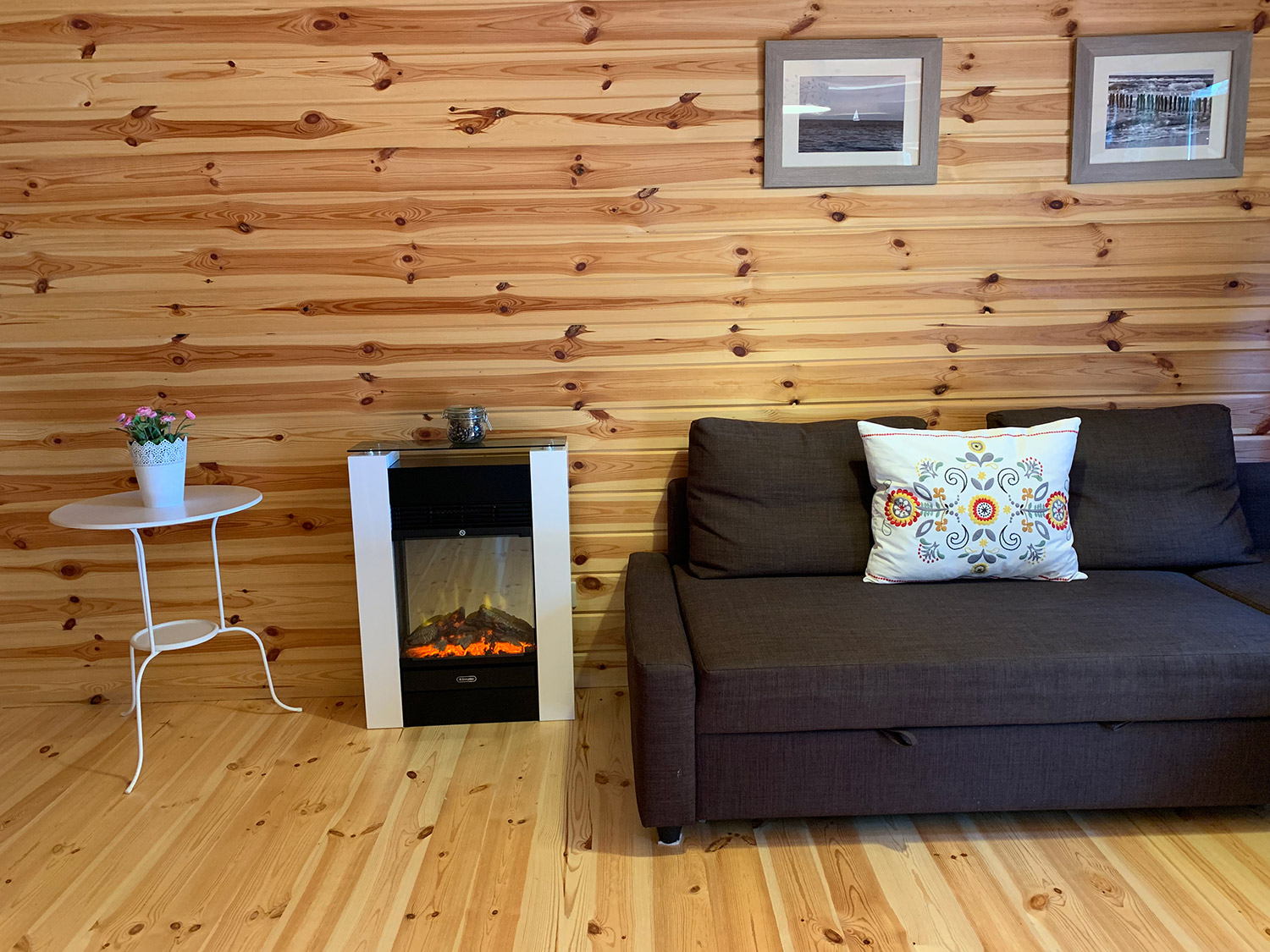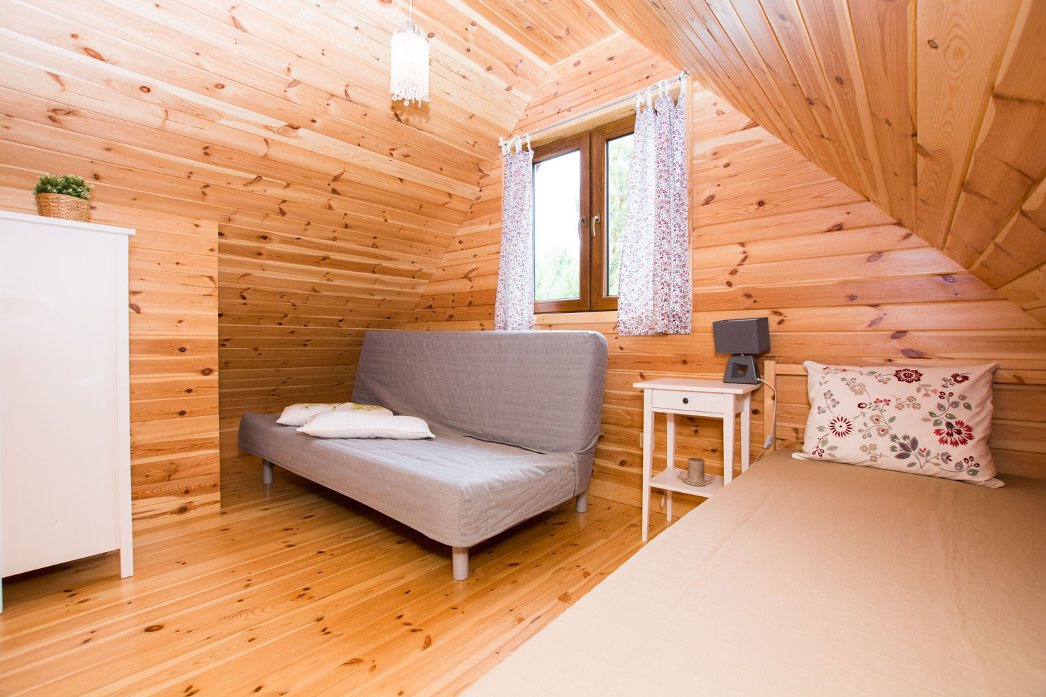 Na piętrze mieszczą się dwie sypialnie. W jednej z nich znajdą Państwo łóżko małżeńskie, oraz fotel z możliwością rozłożenia. W drugiej sypialni- dwa oddzielne, pojedyncze łóżka.