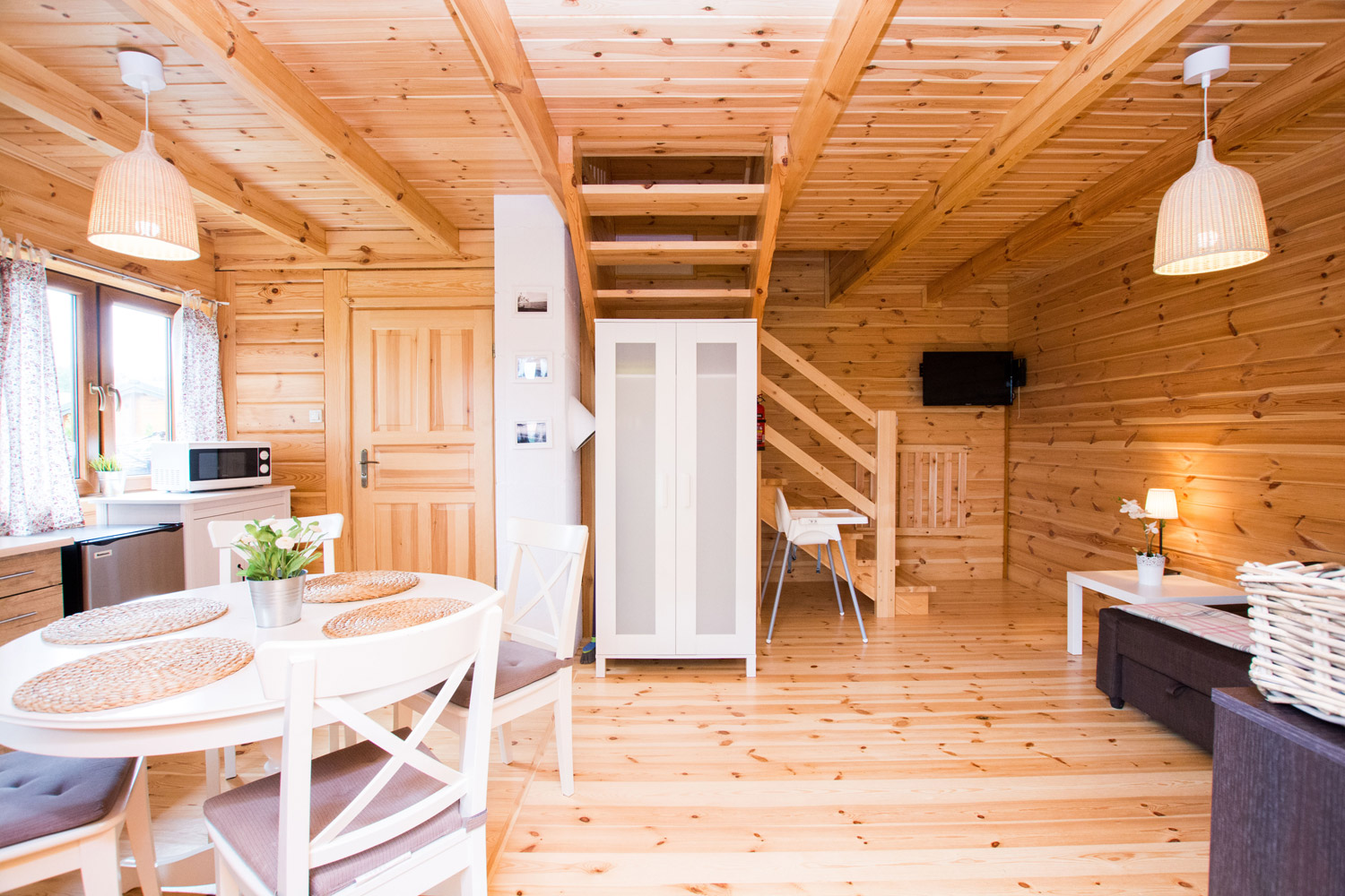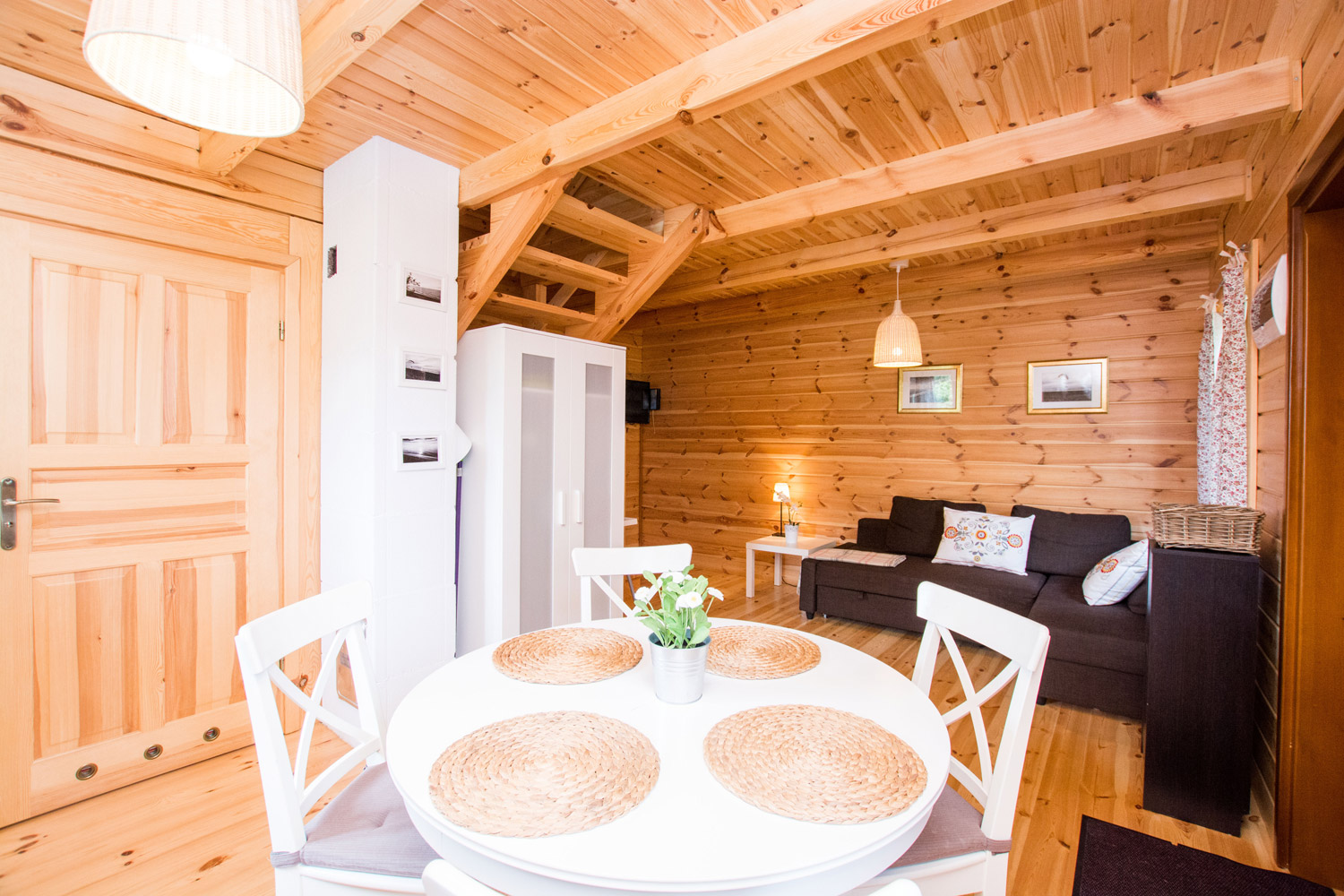 Dodatkowo każdy z domków piętrowych posiada internet WIFI, a także zestaw mebli ogrodowych wraz z grillem,parawanem oraz leżakiem